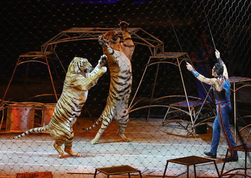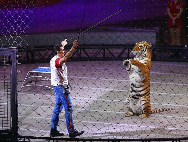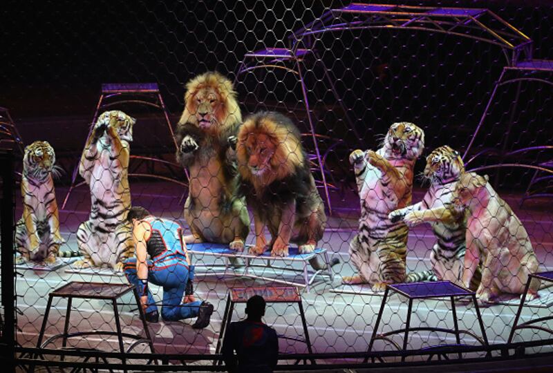 Final show UNIONDALE, NY - MAY 21: Mixed Animals trainer Katie Azzario-Lacey performs on the final day of the Ringling Bros Barnum and Bailey Circus on May 21, 2017 in Uniondale, New York. Known as "The Greatest Show on Earth", the circus performed its final act after a 146 year run. (Photo by Bruce Bennett/Getty Images) (Bruce Bennett/Getty Images)