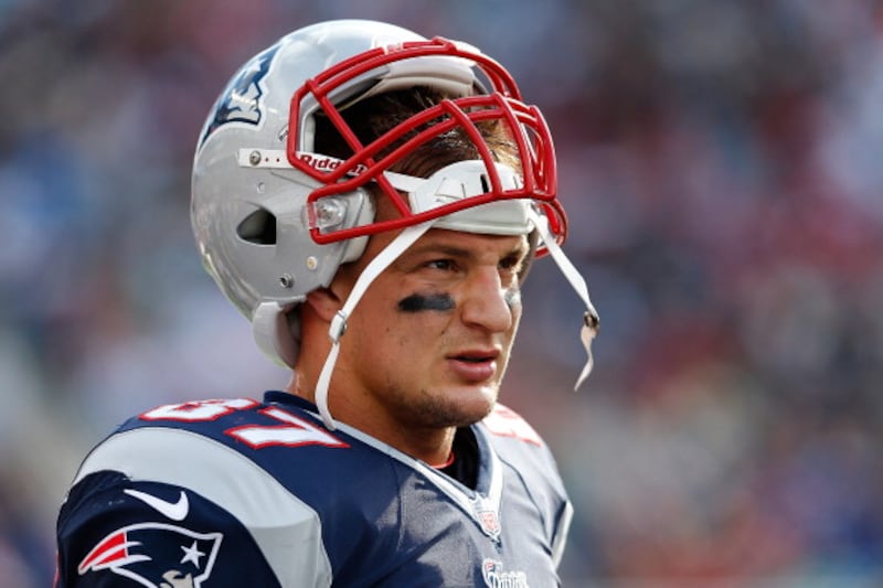 Through the years FOXBORO, MA - OCTOBER 27: Rob Gronkowski #87 of the New England Patriots looks on from the side line during a game with the Miami Dolphins in the first half at Gillette Stadium on October 27, 2013 in Foxboro, Massachusetts. (Photo by Jim Rogash/Getty Images) (Jim Rogash/Getty Images)