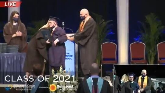 He worked hard in physical therapy for years building up his strength, WFLA reported. He kept his plan a secret from his classmates at Steinbrenner High School. His hard work paid off Wednesday. When his name was called, he walked across the stage to a roar from the crowd and a shock to his peers.