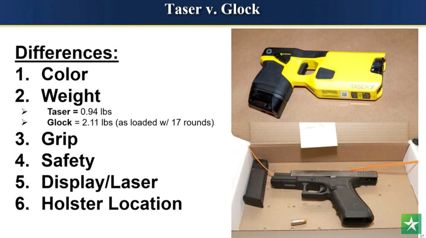 Potter tried to stop Wright, and she appeared to have believed she had pulled her Taser from its holster. Body camera footage shows Potter yelling “I’ll tase you! Taser! Taser! Taser!” But instead of the Taser, she pulled her gun and shot Wright.