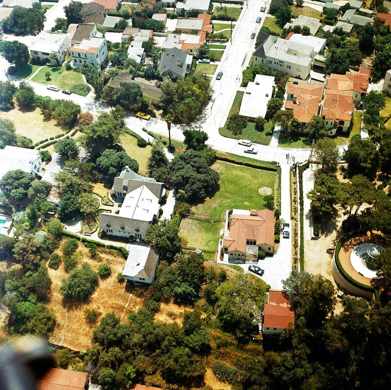 FILE: In this Aug. 13, 1969 file photo an aerial view of the home of Leno and Rosemary LaBianca in the Los Feliz district of Los Angeles.(AP Photo, File)