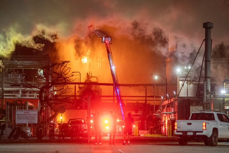 Residents were being advised to stay inside and away from the site. Officials are monitoring the air quality and had not seen any elevated levels of toxins, but that could change.
