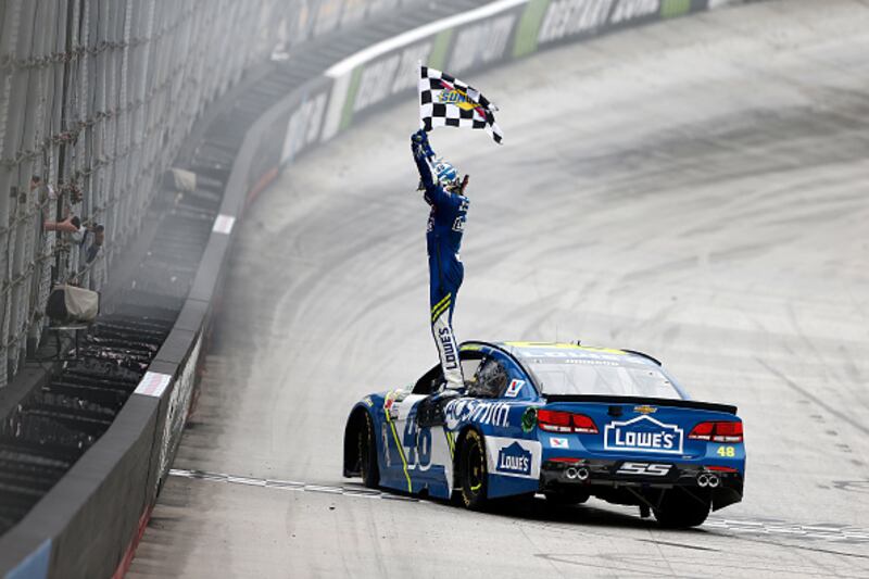 Through the years CHARLOTTE, NC - OCTOBER 09: Jimmie Johnson, driver of the #48 Lowe's Chevrolet, celebrates in victory lane after winning the NASCAR Sprint Cup Series Bank of America 500 at Charlotte Motor Speedway on October 9, 2016 in Charlotte, North Carolina. (Photo by Brian Lawdermilk/Getty Images) (Brian Lawdermilk/Getty Images)