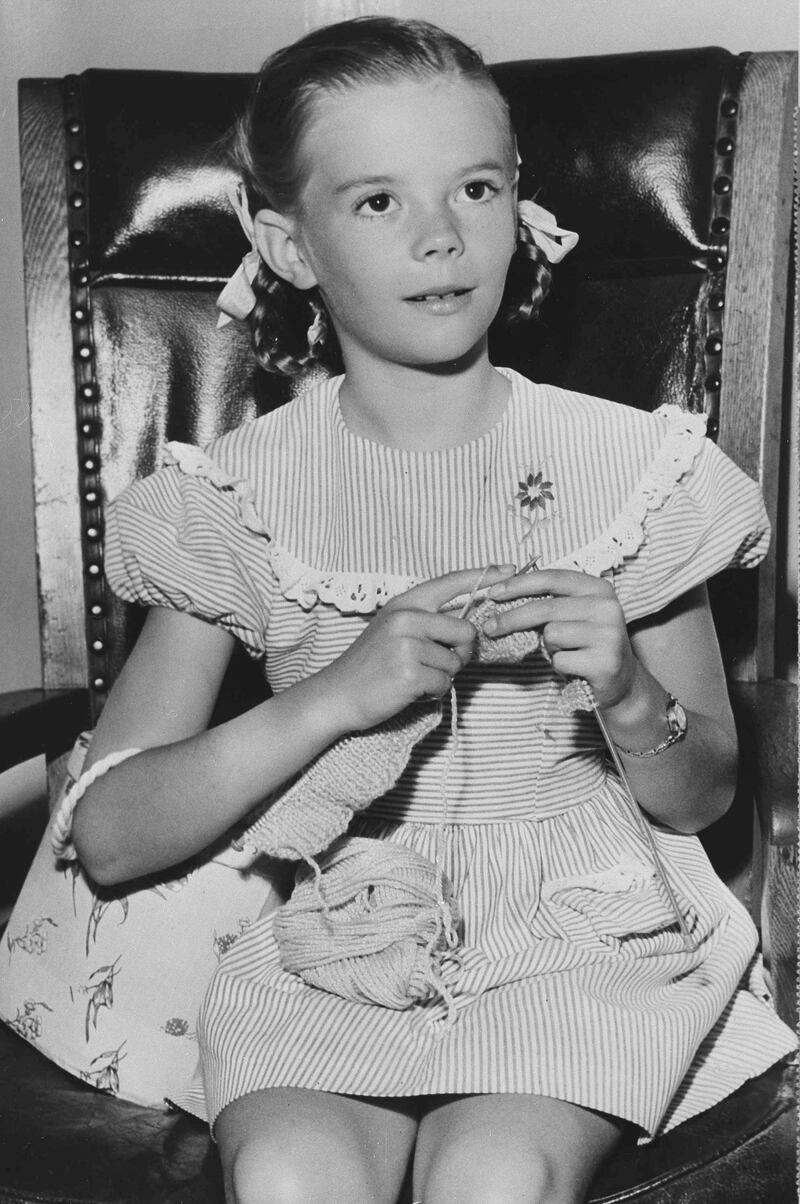 Photos: Natalie Wood through the years 1946: Eight-year-old Natalie Wood knits as she appears in court for judicial approval of her $1,000-a-week film contract on July 18, 1946. The young actress was discovered as she watched a movie being made on location near her home in Santa Rosa, California. (AP Photo/Los Angeles Times)