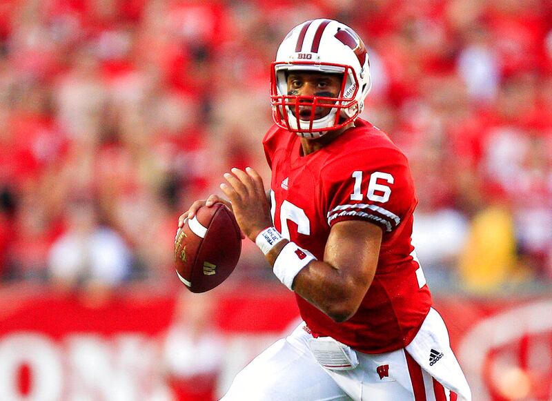 Russell Wilson Wisconsin quarterback Russell Wilson looks to pass against UNLV during the first half of an NCAA college football game Thursday, Sept. 1, 2011, in Madison, Wis. Wisconsin beat UNLV 51-17. (AP Photo/Andy Manis) (Andy Manis/ASSOCIATED PRESS)