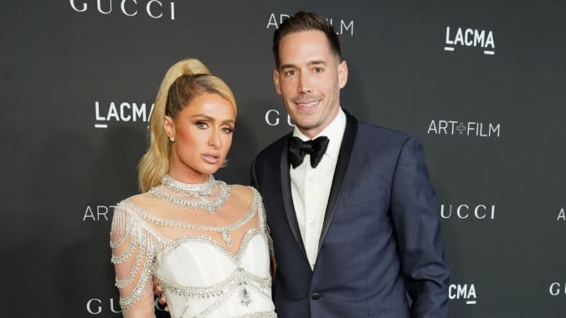 Name game: Paris Hilton and husband Carter Reum revealed the name of their baby boy: Phoenix Barron Hilton Reum. (Michael Tran/AFP via Getty Images)