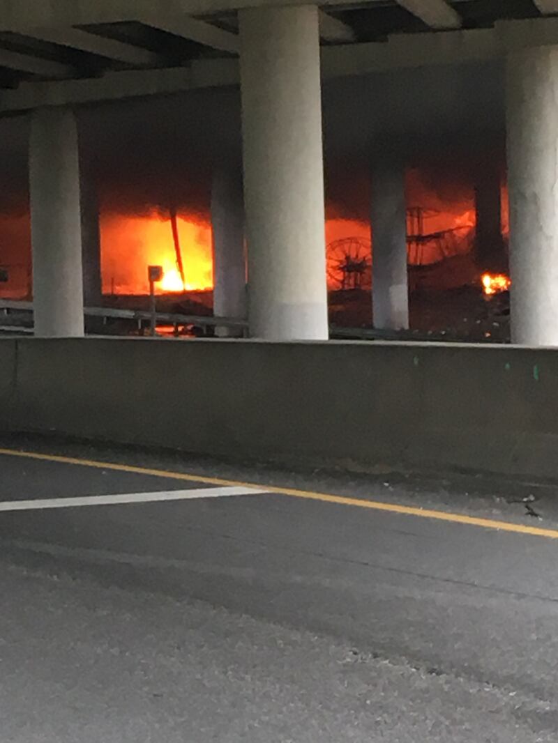 The fire happened around 6 a.m. on Cottman Avenue which is directly underneath the I-95 overpass, WPVI reported.