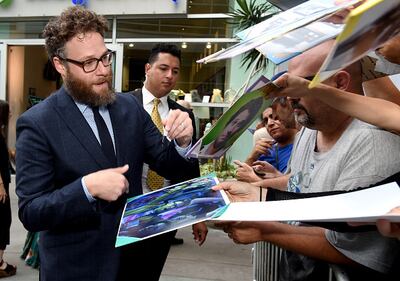 Famous lefthanders Seth Rogen signs autographs at the premiere of the Netflix original film' "Like Father" At ArcLight Theaters on July 31, 2018 in Los Angeles, California. (Photo by Michael Kovac/Getty Images for Netflix) (Michael Kovac/Getty Images for Netflix)