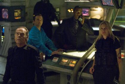 Through the years BATTLESTAR GALACTICA -- "Daybreak" Episode 21/22/23 -- Air Dates 3/13/2009, 3/20/2009 -- Pictured: (l-r) Dean Stockwell as Number One, Katee Sackhoff as Lieutenant Kara 'Starbuck' Thrace (Photo by Carole Segal/NBCU Photo Bank/NBCUniversal via Getty Images via Getty Images) (SYFY/Syfy/NBCUniversal via Getty Imag)