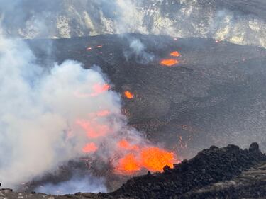 Photos: Hawaii's Kilauea volcano erupts At approximately 3:20 p.m. HST on September 29, 2021, an eruption began within Halemaumau crater in Kilauea’s summit caldera, within Hawaii Volcanoes National Park. Fissures opened to the east of the large island within the lava lake that was active in Halemaumau crater from December 2020 until May 2021, and are generating lava flows on the surface of the older lava lake. At approximately 4:43 p.m. HST, another vent opened on the west wall of Halemaumau crater, and is visible in the left side of this image. (USGS)