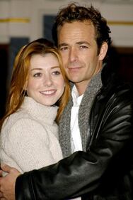 Alyson Hannigan and Luke Perry during West End's "When Harry Met Sally" - Photocall - January 8, 2004 at West End Theatre in London, United Kingdom. (Photo by Fred Duval/FilmMagic)