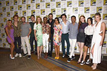 Luke Perry and Marisol Nichols speak onstage at the "Riverdale" special video presentation and Q&A during Comic-Con International 2018 at San Diego Convention Center on July 22, 2018 in San Diego, California. (Kevin Winter/Getty Images)