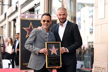 Marc Anthony Honored With Star On Hollywood Walk Of Fame HOLLYWOOD, CALIFORNIA - SEPTEMBER 07: (L-R) Marc Anthony and David Beckham attend the Hollywood Walk of Fame Star Ceremony for Marc Anthony on September 07, 2023 in Hollywood, California. (Photo by Emma McIntyre/Getty Images) (Emma McIntyre/Getty Images)