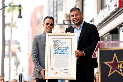 Marc Anthony Honored With Star On Hollywood Walk Of Fame HOLLYWOOD, CALIFORNIA - SEPTEMBER 07: (L-R) Marc Anthony and Hugo Soto-Martinez attend the Hollywood Walk of Fame Star Ceremony for Marc Anthony on September 07, 2023 in Hollywood, California. (Photo by Emma McIntyre/Getty Images) (Emma McIntyre/Getty Images)