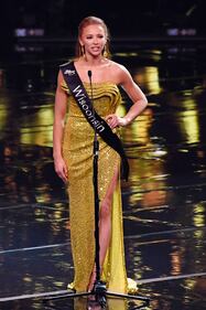 Miss America Miss Wisconsin Jennifer Schmidt in the Miss America competition at the Mohegan Sun, Thursday, Dec. 16, 2021, in Uncasville, Conn. (AP Photo/Jessica Hill) (Jessica Hill/AP)