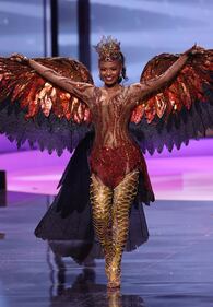 Photos: Miss Universe 2021 pageant Miss Universe USA Asya Branch appears onstage at the Miss Universe 2021 - National Costume Show at Seminole Hard Rock Hotel & Casino on May 13, 2021, in Hollywood, Florida. (Rodrigo Varela/Getty Images)