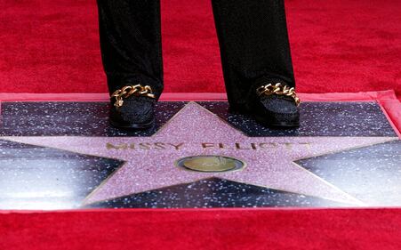 Missy Elliott-Hollywood Walk of Fame Missy Elliott stands atop her new star on the Hollywood Walk of Fame during a ceremony for her, Monday, Nov. 8, 2021, in Los Angeles. (AP Photo/Chris Pizzello) (Chris Pizzello/Chris Pizzello/Invision/AP)