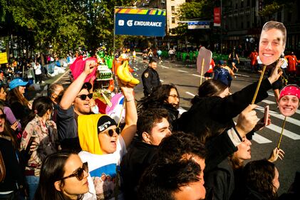 2021 NYC Marathon Spectators cheer runners as they make their way during the New York City Marathon in New York, Sunday, Nov. 7, 2021. (AP Photo/Eduardo Munoz Alvarez) (Eduardo Munoz Alvarez/AP)