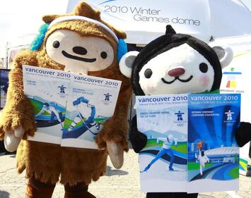 Vancouver 2010 VANCOUVER, CANADA - JUNE 4: Vancouver 2010 mascots Miga (R) and Quatchi hold up samples of the first four Olympic ticket designs for the 2010 Olympic and Paralympic Winter Games that were unveiled today by the Vancouver Organizing Committee June 4, 2009 in Burnaby, British Columbia, Canada. (Photo By Jeff Vinnick/Getty Images) (Jeff Vinnick/Getty Images)