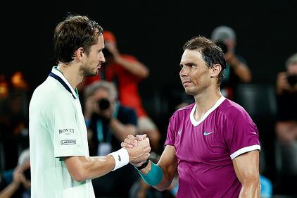 Photos: Rafael Nadal rallies in Australian Open final to win record 21st major Rafael Nadal of Spain and Daniil Medvedev of Russia shake hands after their Men's Singles Final match during Day 14 of the 2022 Australian Open at Melbourne Park on January 30, 2022, in Melbourne, Australia. (Daniel Pockett/Getty Images)