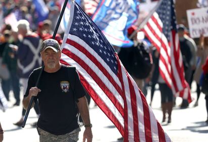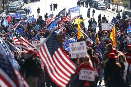 Pro-Trump Right Wing Groups Hold "Million MAGA March" To Protest Election Results WASHINGTON, DC - NOVEMBER 14: People participate in the “Million MAGA March” from Freedom Plaza to the Supreme Court, on November 14, 2020 in Washington, DC. Supporters of U.S. President Donald Trump marching to protest the outcome of the 2020 presidential election. (Photo by Tasos Katopodis/Getty Images) (Tasos Katopodis/Getty Images)