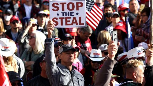 Pro-Trump Right Wing Groups Hold "Million MAGA March" To Protest Election Results WASHINGTON, DC - NOVEMBER 14: Supporters of U.S. President Donald Trump pass through Black Lives Matter Plaza on their way to a rally to protest election results on November 14, 2020 in Washington, DC. President Donald Trump is struggling to win legal action seeking to delay certification of the 2020 presidential election in his loss to President-elect Joseph R. Biden Jr. (Photo by Joshua Roberts/Getty Images) (Joshua Roberts/Getty Images)