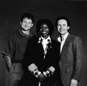 Through the years Promotional studio portrait of American comedians Robin Williams, Whoopi Goldberg and Billy Crystal, the hosts of the 'Comedy Relief' variety benefit special, 1986. (Photo by HBO/Getty Images) (HBO/Getty Images)