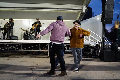 Photos: 'World's largest menorah' lit for Hanukkah 2021 Women dance after the "world's largest Hanukkah menorah" is lit on the first night of Hannukah at Grand Army Plaza on November 28, 2021, in New York City. (Alexi Rosenfeld/Getty Images)