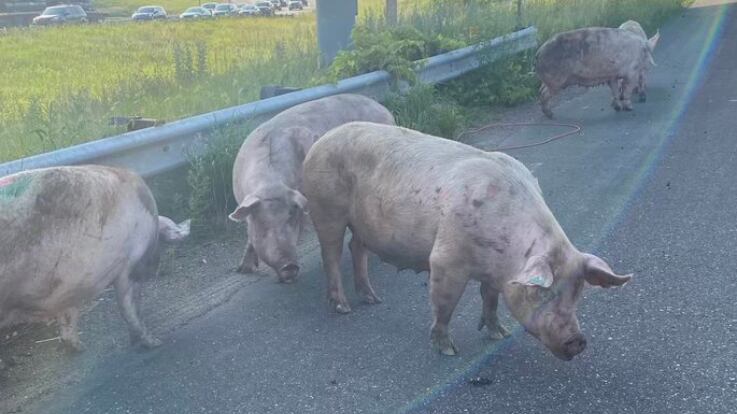 Authorities also worked to round up the pigs on the roadway, the newspaper reported.