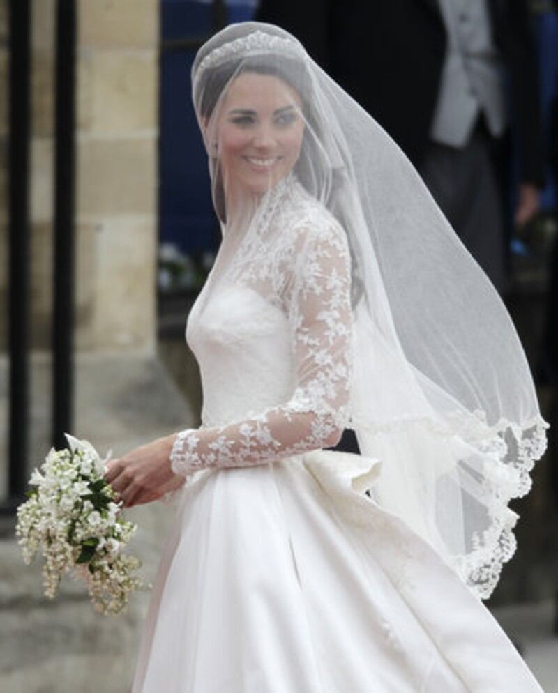 Kate Middleton arrives at Westminster Abbey at the Royal Wedding in London Friday, April 29, 2011. (Gero Breloer ASSOCIATED PRESS)