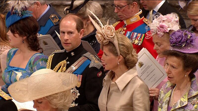 Britain's Prince Edward, center left, and Sophie Rhys-Jones, Countess of Wessex, center right, wait for the start of the ceremony at Westminster Abbey for the Royal Wedding in London on Friday, April, 29, 2011. (ASSOCIATED PRESS)