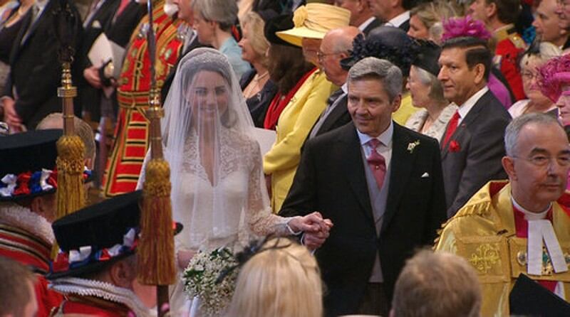 Kate Middleton walks down the aisle with her father, Michael Middleton, at Westminster Abbey for the Royal Wedding in London on Friday, April, 29, 2011. (ASSOCIATED PRESS)
