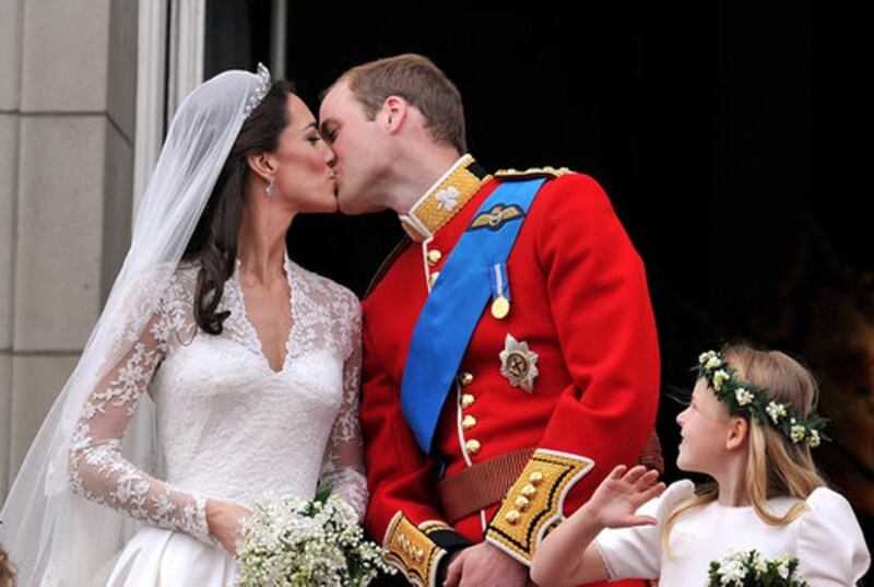 Britain's Prince William kisses his wife Kate, Duchess of Cambridge, on the balcony of Buckingham Palace after the Royal Wedding in London Friday, April, 29, 2011. (Matt Dunham ASSOCIATED PRESS)