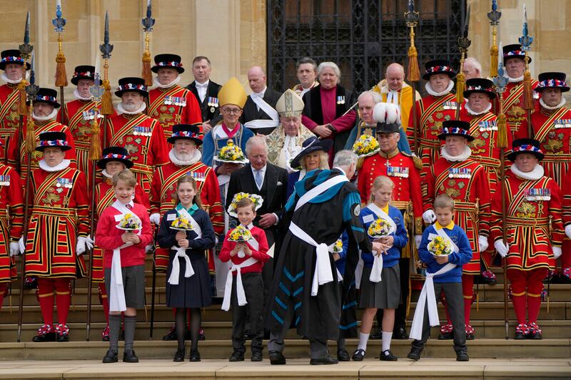 Prince Charles distributed the “Maundy money,” specially-minted coins, along with a purse of traditional coins, to men and women who serve the church and community.