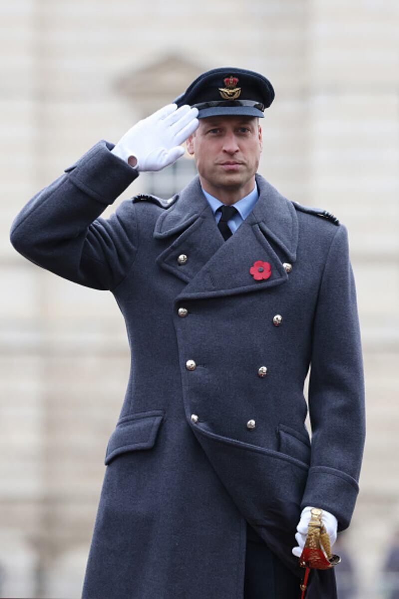 Photos: Kate Middleton, Prince William attend Remembrance Sunday service Prince William, Duke of Cambridge, salutes during the National Service of Remembrance at Horse Guards Parade on November 14, 2021, in London. (Hollie Adams/Getty Images)