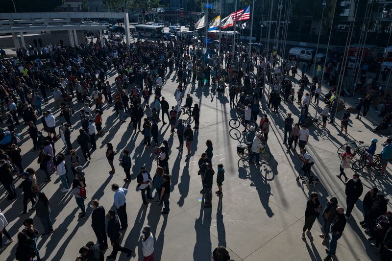 Photos: Community pays tribute to victims of deadly San Jose railyard shooting People attend a vigil at City Hall in San Jose, Calif., Thursday, May 27, 2021, in remembrance of the multiple people killed when a gunman opened fire at a rail yard the day before. (AP Photo/Nic Coury)