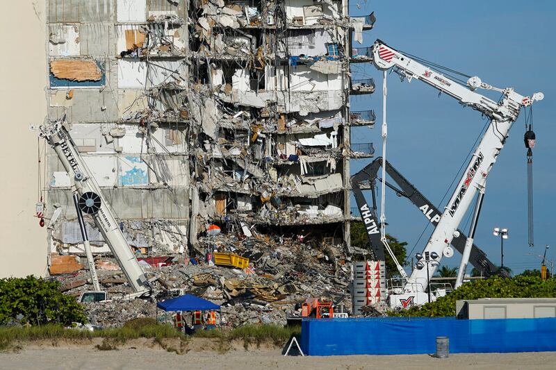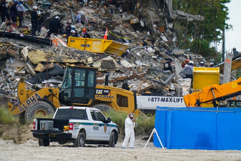 Authorities continue to investigate the cause of the collapse. A 2018 engineering report found that the building’s ground-floor pool deck was resting on a concrete slab that had “major structural damage” and needed extensive repairs. The report also found “abundant cracking” of concrete columns, beams and walls in the parking garage.