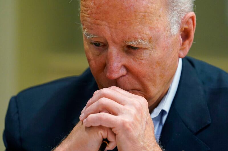 Surfside collapse President Joe Biden listens during a briefing with first responders and local officials in Miami Beach, Thursday, July 1, 2021, on the condo tower that collapsed in Surfside, Fla., last week. (AP Photo/Susan Walsh) (Susan Walsh/AP)