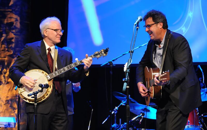 Photos: Steve Martin through the years 2009: Comedian/musician Steve Martin joins honoree Vince Gill to perform during the Grammy Salute to Country Music Honoring Vince Gill hosted by the Recording Academy at the Loveless Barn on September 9, 2009, in Nashville, Tennessee. (Rick Diamond/Getty Images for NARAS)