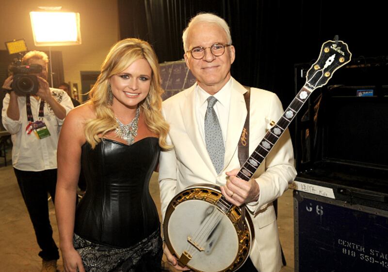 Photos: Steve Martin through the years 2012: Singer Miranda Lambert and Steve Martin pose backstage at the 47th annual Academy of Country Music Awards held at the MGM Grand Garden Arena on April 1, 2012, in Las Vegas. (Rick Diamond/Getty Images for ACM)