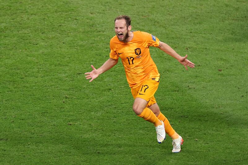 World Cup Netherlands vs USA DOHA, QATAR - DECEMBER 03: Daley Blind of Netherlands celebrates after scoring the team's second goal during the FIFA World Cup Qatar 2022 Round of 16 match between Netherlands and USA at Khalifa International Stadium on December 03, 2022 in Doha, Qatar. (Photo by Catherine Ivill/Getty Images) (Catherine Ivill/Getty Images)
