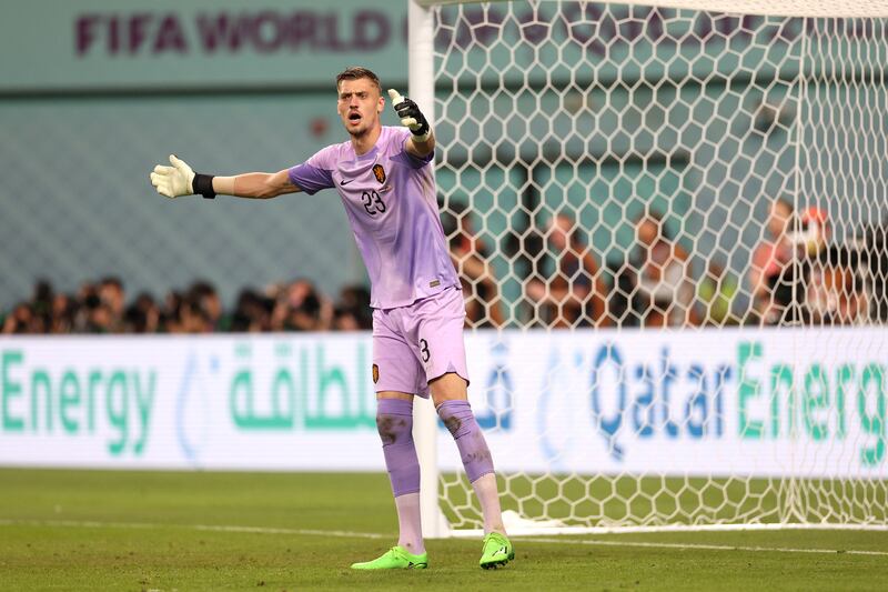 World Cup Netherlands vs USA DOHA, QATAR - DECEMBER 03: Andries Noppert of Netherlands gives the team instructions during the FIFA World Cup Qatar 2022 Round of 16 match between Netherlands and USA at Khalifa International Stadium on December 03, 2022 in Doha, Qatar. (Photo by Elsa/Getty Images) (Elsa/Getty Images)