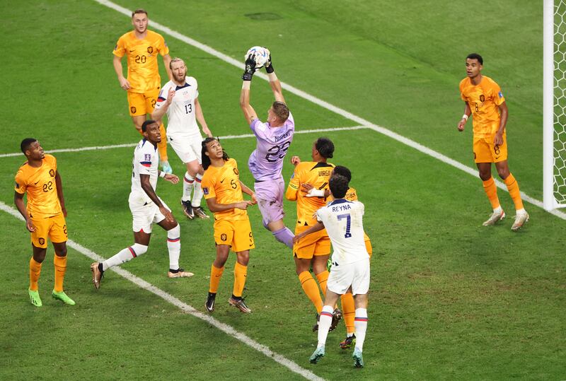 World Cup Netherlands vs USA DOHA, QATAR - DECEMBER 03: Matt Turner of United States makes a save during the FIFA World Cup Qatar 2022 Round of 16 match between Netherlands and USA at Khalifa International Stadium on December 03, 2022 in Doha, Qatar. (Photo by Dan Mullan/Getty Images) (DAN MULLAN/Getty Images)