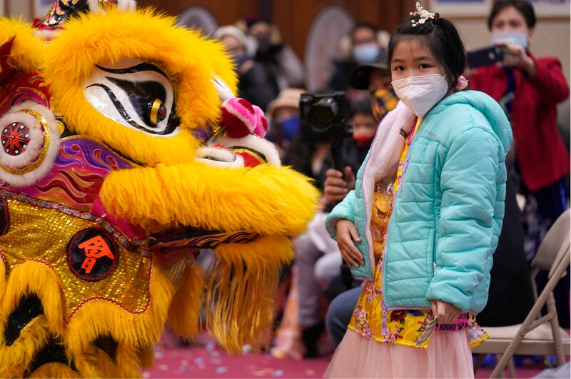 Lunar New Year celebrated around the world Wearing a mask to prevent the spread of COVID-19, Anna Lee, 9, stands next to lion dancers during a Lunar New Year celebration at Dao Quang Temple on Thursday, Feb. 11, 2021, in Garland, Texas. The celebration marks the Year of the Ox in the Chinese calendar. (AP Photo/LM Otero)