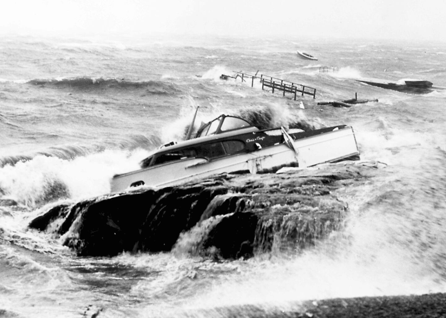 The Great Atlantic Hurricane made landfall on Long Island and Rhode Island in September 1944, causing 46 fatalities on land and $100 million in damage. The storm also sank five World War II vessels, killing 334 additional people.