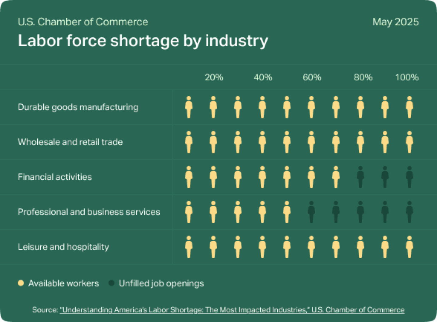 According to the U.S. Chamber of Commerce, there simply isn't enough available labor to fill every vacant role in the U.S.: