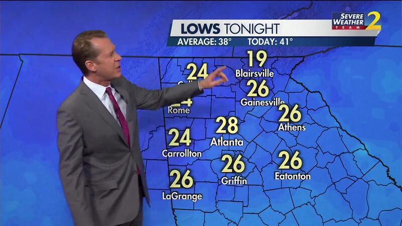 Severe Weather Team 2 Chief Meteorologist Brad Nitz says temperatures will be in the 20s except near the Georgia mountains, which will dip into the upper teens.